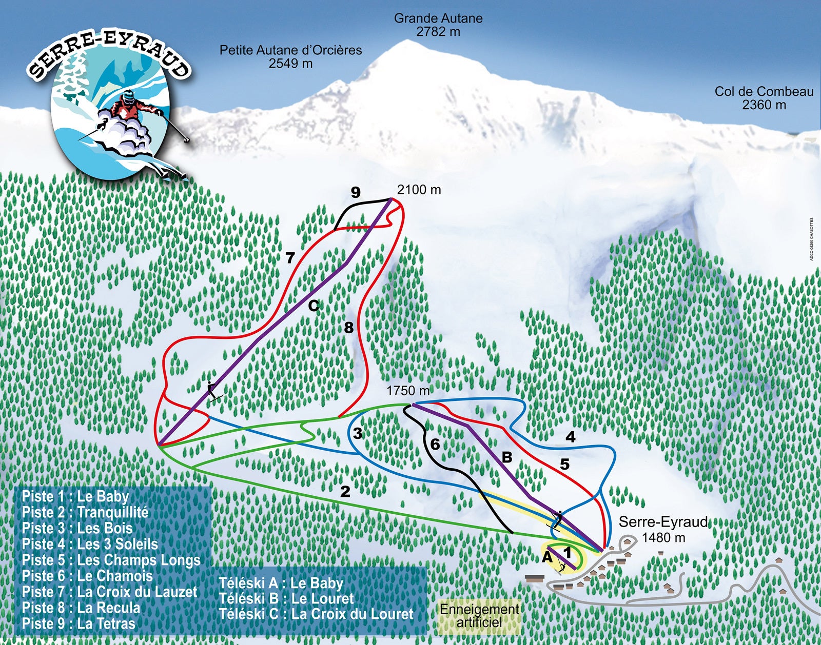 Serre Eyraud Mapa sjezdovekPoznejte skiareál Serre Eyraud - podívejte se, jak vypadá mapa střediska Serre Eyraud, naplánujte si lyžování na další den nebo si znovu připomeňte tratě, které jste už na lyžích projeli. Kliknutím na mapu níže se obrázek zobrazí v nejvyšší kvalitě.Zobraz mapu v plné velikosti