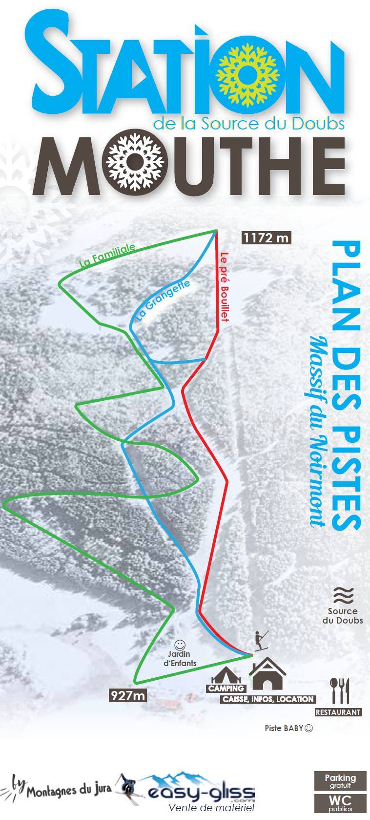 Poznejte skiareál La Source du Doubs - Mouthe - podívejte se, jak vypadá mapa střediska La Source du Doubs - Mouthe, naplánujte si lyžování na další den nebo si znovu připomeňte tratě, které jste už na lyžích projeli. Kliknutím na mapu níže se obrázek zobrazí v nejvyšší kvalitě.