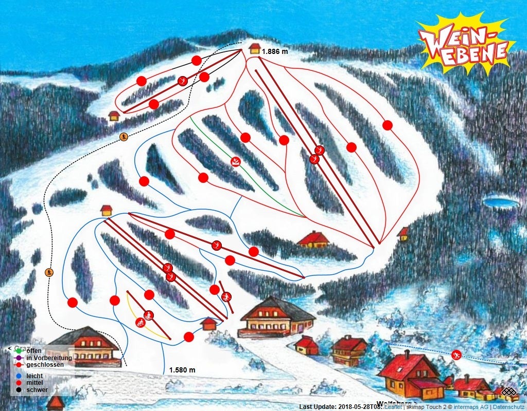 Weinebene Mapa sjezdovekPoznejte skiareál Weinebene - podívejte se, jak vypadá mapa střediska Weinebene, naplánujte si lyžování na další den nebo si znovu připomeňte tratě, které jste už na lyžích projeli. Kliknutím na mapu níže se obrázek zobrazí v nejvyšší kvalitě.Zobraz mapu v plné velikosti