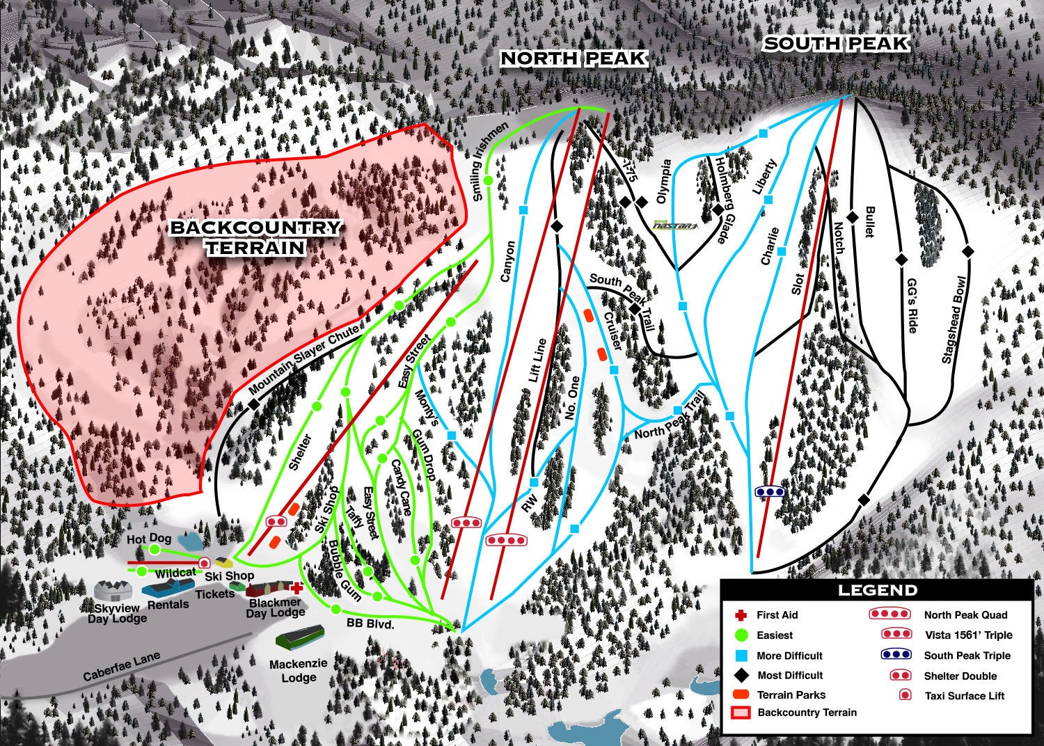 Poznejte skiareál Caberfae Peaks - podívejte se, jak vypadá mapa střediska Caberfae Peaks, naplánujte si lyžování na další den nebo si znovu připomeňte tratě, které jste už na lyžích projeli. Kliknutím na mapu níže se obrázek zobrazí v nejvyšší kvalitě.