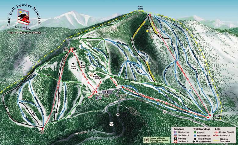 Poznejte skiareál Lost Trail - Powder Mtn - podívejte se, jak vypadá mapa střediska Lost Trail - Powder Mtn, naplánujte si lyžování na další den nebo si znovu připomeňte tratě, které jste už na lyžích projeli. Kliknutím na mapu níže se obrázek zobrazí v nejvyšší kvalitě.