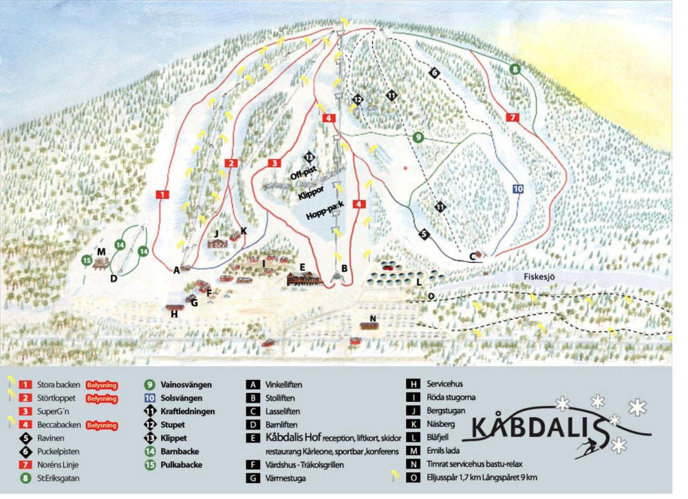 Kåbdalis Mapa sjezdovekPoznejte skiareál Kåbdalis - podívejte se, jak vypadá mapa střediska Kåbdalis, naplánujte si lyžování na další den nebo si znovu připomeňte tratě, které jste už na lyžích projeli. Kliknutím na mapu níže se obrázek zobrazí v nejvyšší kvalitě.Zobraz mapu v plné velikosti