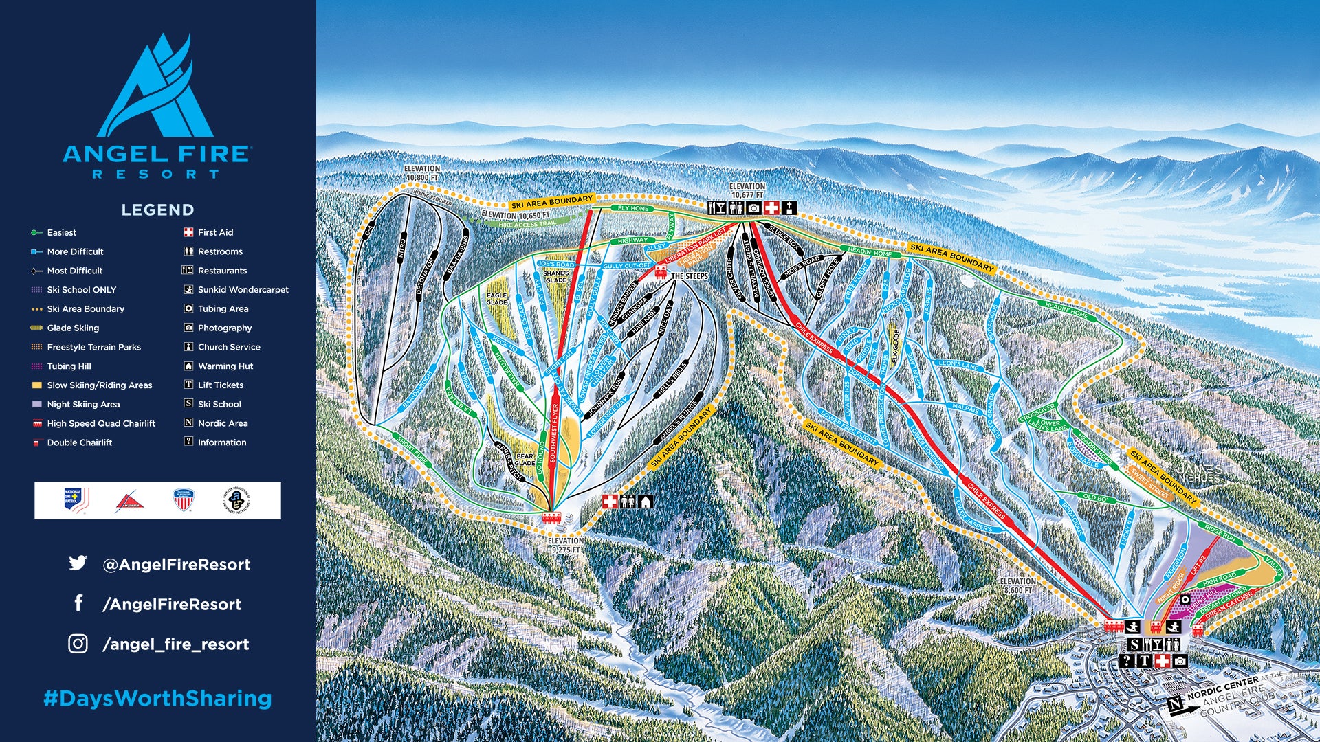 Krajinné prvky jako zasněžené lesy, otevřené pláně a výhledy na Carson National Forest dodávají lyžování v Angel Fire Resort jedinečný charakter. Díky kompaktnímu uspořádání střediska, kvalitnímu prašanu a pestré nabídce terénu je Angel Fire ideálním místem pro zimní dovolenou všech úrovní.