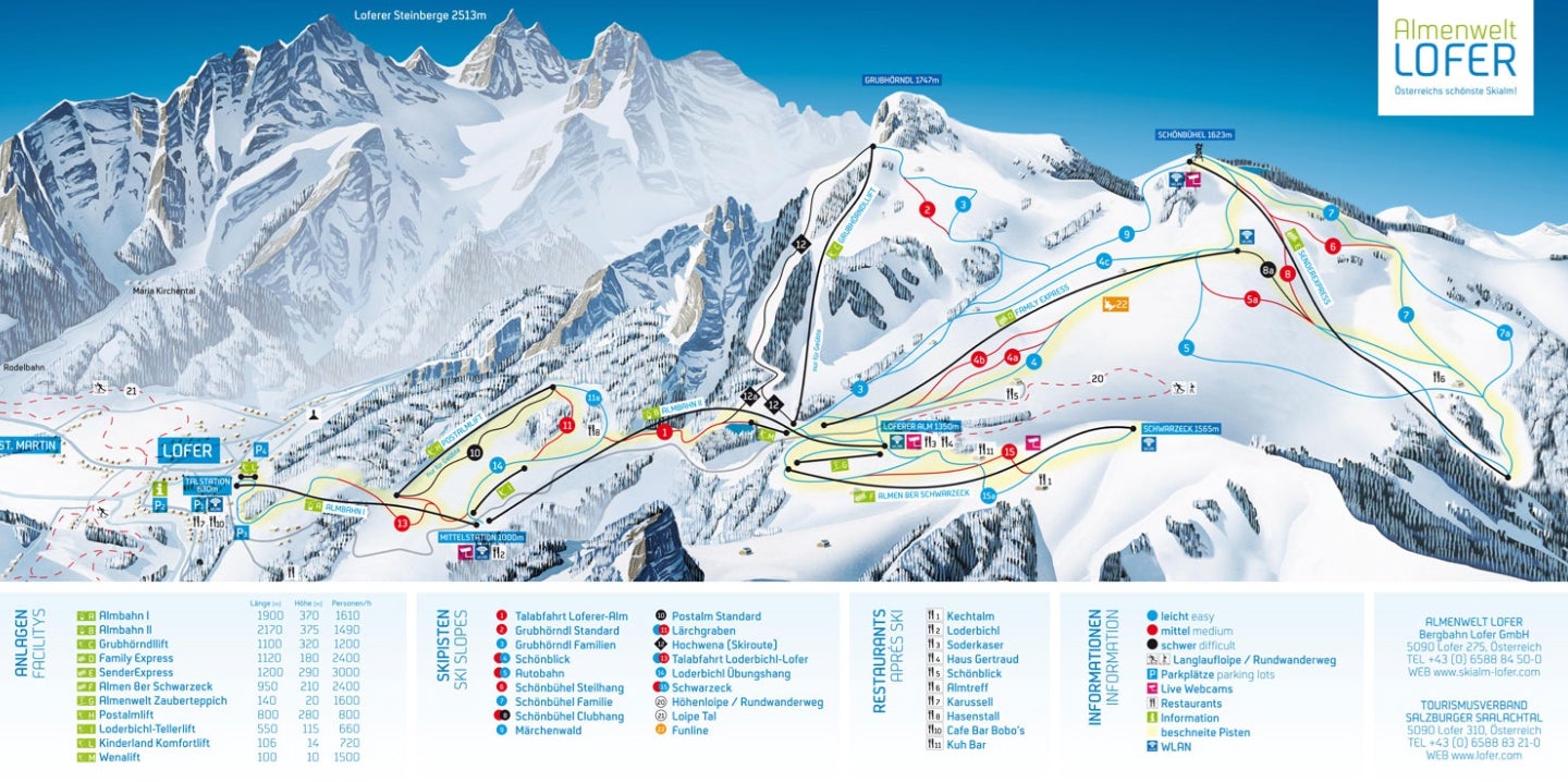 Poznejte skiareál Lofer - Almenwelt Lofer - podívejte se, jak vypadá mapa střediska Lofer - Almenwelt Lofer, naplánujte si lyžování na další den nebo si znovu připomeňte tratě, které jste už na lyžích projeli. Kliknutím na mapu níže se obrázek zobrazí v nejvyšší kvalitě.