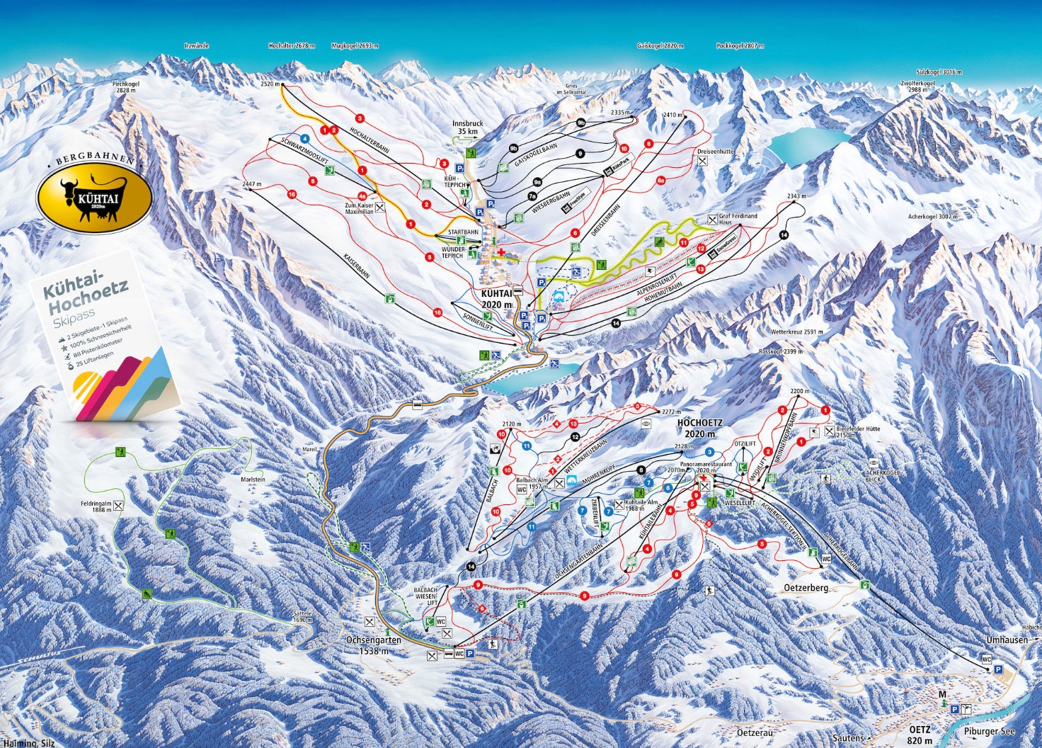 Kühtai Mapa sjezdovekPoznejte skiareál Kühtai - podívejte se, jak vypadá mapa střediska Kühtai, naplánujte si lyžování na další den nebo si znovu připomeňte tratě, které jste už na lyžích projeli. Kliknutím na mapu níže se obrázek zobrazí v nejvyšší kvalitě.Zobraz mapu v plné velikosti