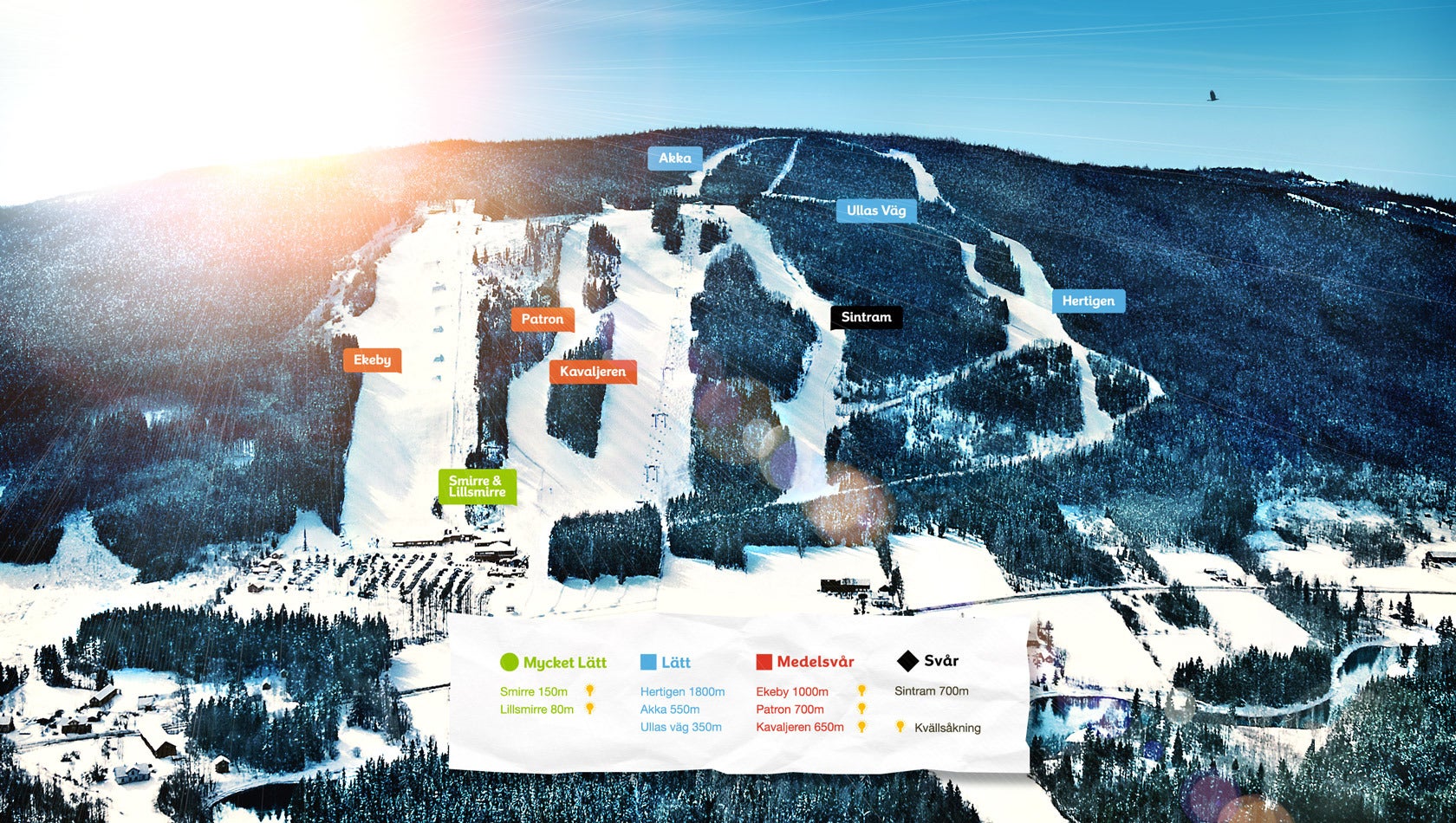 Ski Sunne Mapa sjezdovekPoznejte skiareál Ski Sunne - podívejte se, jak vypadá mapa střediska Ski Sunne, naplánujte si lyžování na další den nebo si znovu připomeňte tratě, které jste už na lyžích projeli. Kliknutím na mapu níže se obrázek zobrazí v nejvyšší kvalitě.Zobraz mapu v plné velikosti